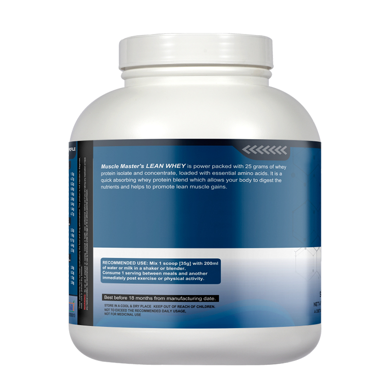 Muscle Master's LEAN WHEY is power packed with 25 grams of whey protein isolate and concentrate, loaded with essential amino acids. It is a quick absorbing whey protein blend which allows your body to digest the nutrients and helps to promote lean muscle gains.