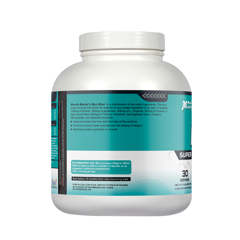 Muscle Master's Myo Blast is a combination of top-notch ingredients. This is a unique formula that works far superior to any single ingredient on its own. It contains 1200mg of BCAAs, 500mg of glutamine, 500mg of L- Arginine, 300mg of Taurine, a high concentration 300mg of Tribulus Terrestris, fast digestive carbs, Creatine Monohydrate, and digestive enzymes. Helps to increase the time and intensity of the workout. Enhances muscle repair and reduces the feeling of fatigue. Maximizes protein synthesis in muscle.