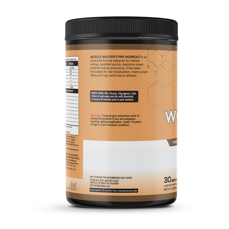 MUSCLE MASTER’S PRE WORKOUT is an advanced formula designed for intense energy, amplified pumps, explosive power, extreme muscle endurance. It has been formulated for star bodybuilders, heavy power lifters and high performance athletes.